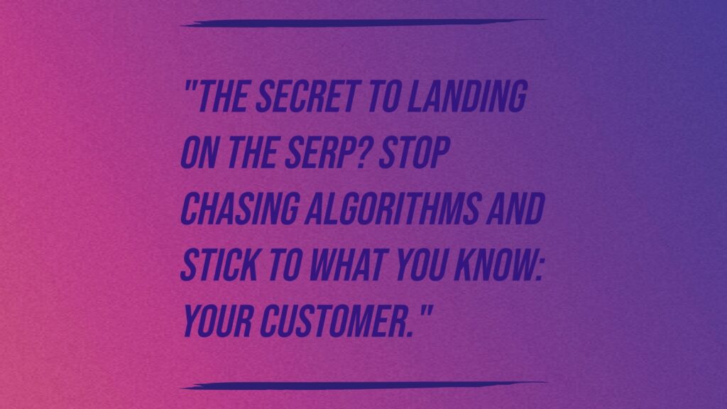 The rules are always changing as Google (and other players) are evolving their search engine algorithms to better mimic the people behind the keyboard. From the birth of the SERP in 1998, to the BERT update, that allows Google bot to index conversational speech and the context in which it sits, the technology delivering what you see in your search results is quickly catching up to those who are looking for answers. Your best chance at success is to stop chasing the algorithm changes and start optimizing your site to appeal to what you know: your customers.