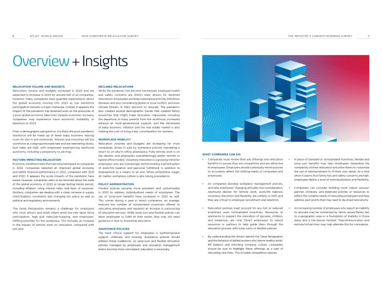 · Relocation volumes and budgets continued to increase in 2023, with most companies anticipating further increases, along with continued improvements in their financial performance and the state of the global economy overall in 2024.