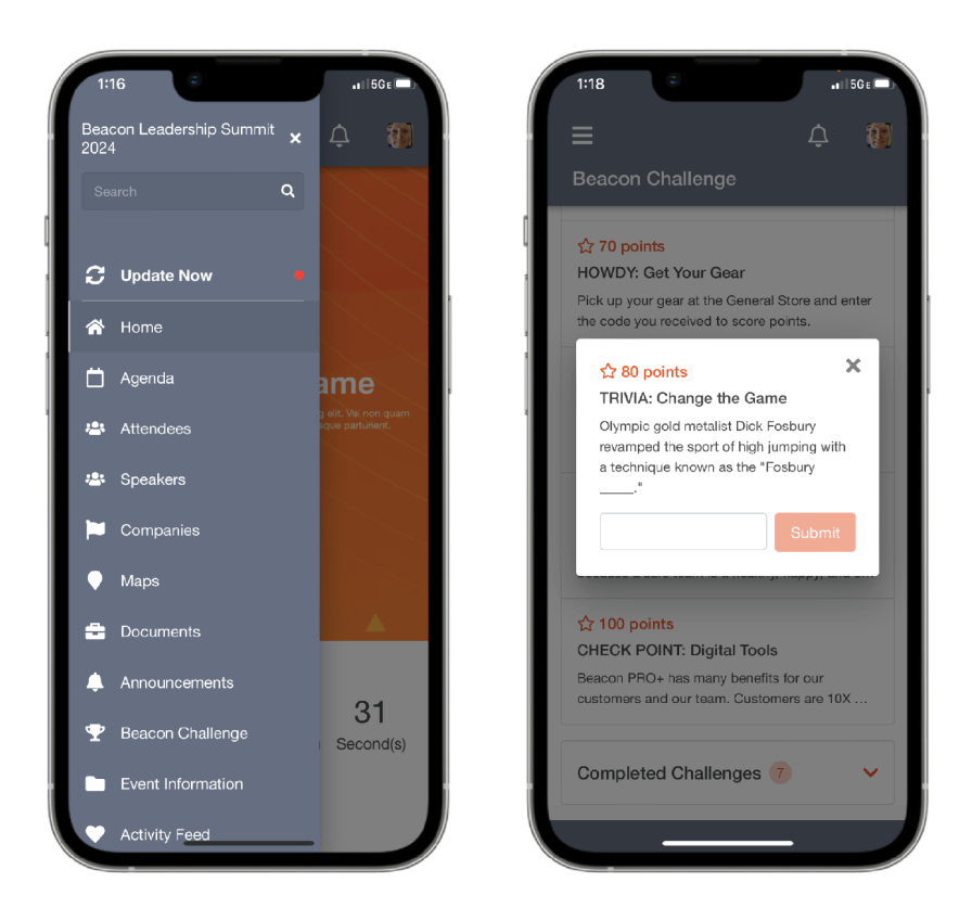 While attendees certainly engaged with the physical objects, Beacon also wanted to drive engagement with their conference app. In the past, the company had tried, unsuccessfully, to get participants to use the app to download the program schedule, access a map of the venue and, most importantly, communicate with each other. We know that there’s nothing that motivates action like a little healthy competition, so we created a daily trivia challenge that participants could only access within the app, challenging them to answer questions about the presentations, the RISE stories, and the company itself.